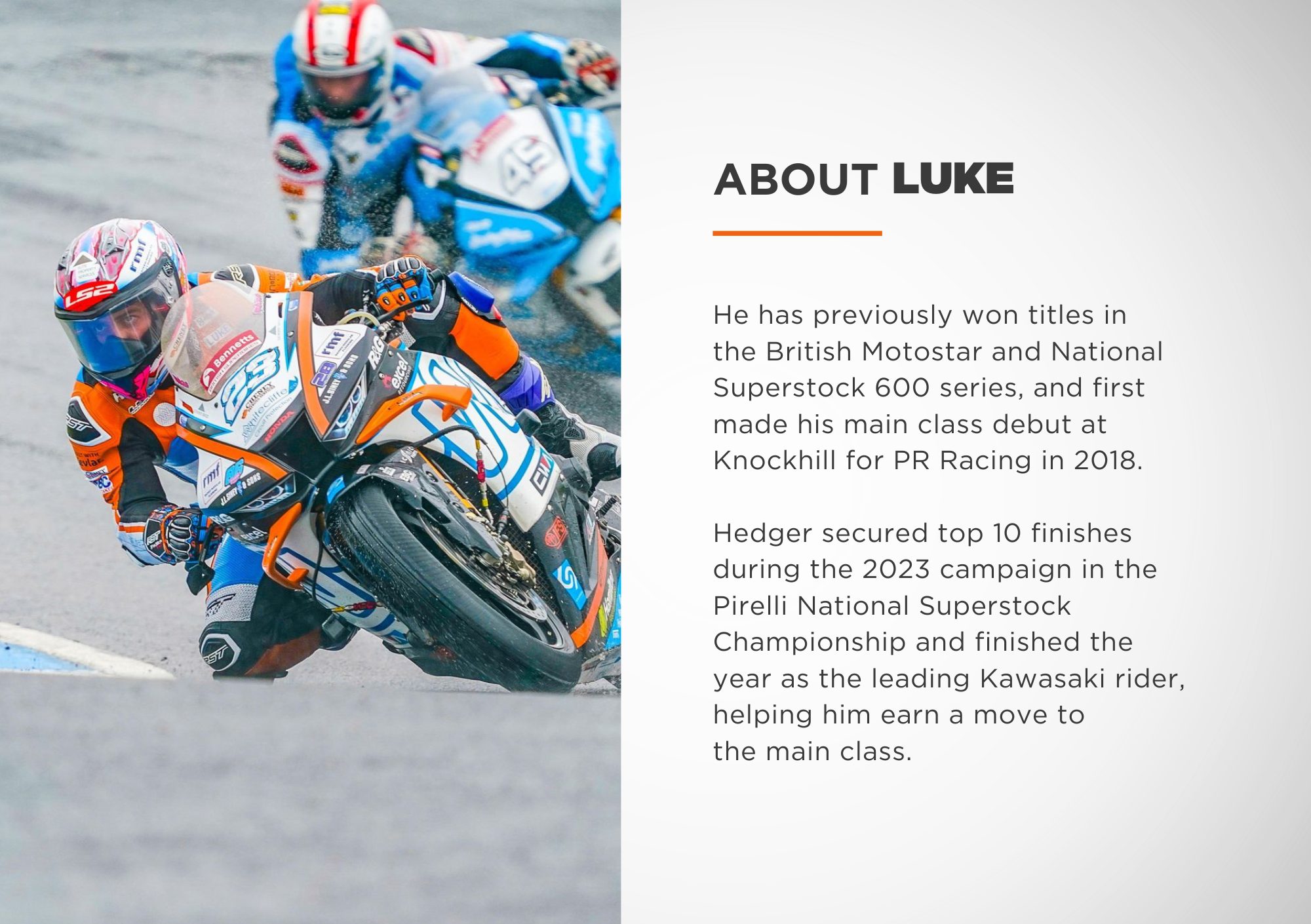 Hedger secured top 10 finishes during the 2023 campaign in the Pirelli National Superstock Championship and finished the year as the leading Kawasaki rider, helping him secure a move to the main class.